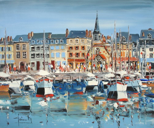 tableau peinture à l’huile sur toile sur Honfleur 60cm x 73cm oil painting on canvas about Honfleur 60cm x 73cm Honfleur, ville portuaire normande mise en lumière par de nombreux artistes dont Gustave Courbet, Eugène Boudin ou Claude Monet, se caractérise par ses façades recouvertes d’ardoises et son pittoresque vieux bassin qui ne cesse d’inspirer …