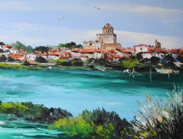 tableau peinture à l’huile sur toile des Saintes-Maries-de-la-Mer 30cm x 60cm oil painting on canvas about the Saintes-Maries-de-la-Mer 30cm x 60cm Commune très étendue des Bouches-du-Rhône, composée en partie de marécages, la station balnéaire des Saintes-Maries-de-la-Mer est la capitale de la Camargue. Les gens du voyage, venus de toute l’Europe, y font chaque année, …