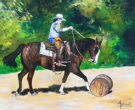 tableau peinture à l’huile sur toile d’un sport équestre  46cm x 55cm