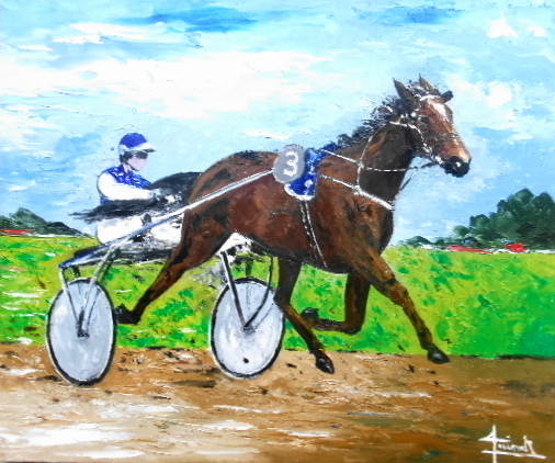 tableau peinture à l’huile sur toile d’un trotteur    46cm x 55cm